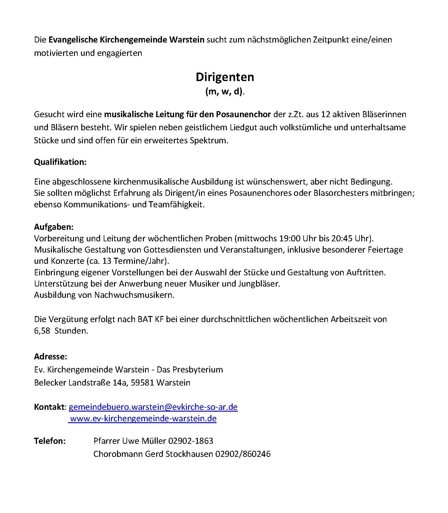 Der Posaunenchor Warstein sucht neue Mitglieder und andere musikalische Ensembles, die gemeinsam mit dem Posaunenchor Projekte in der schönen Martin-Luther-Kirche in Warstein initiieren möchten.