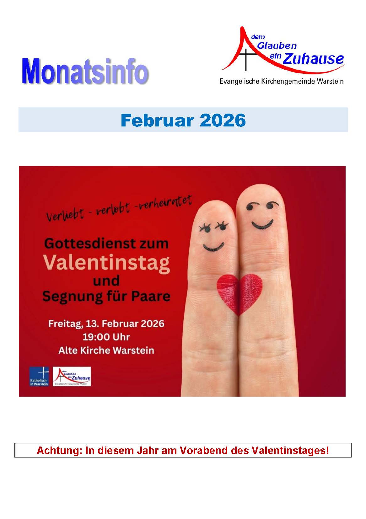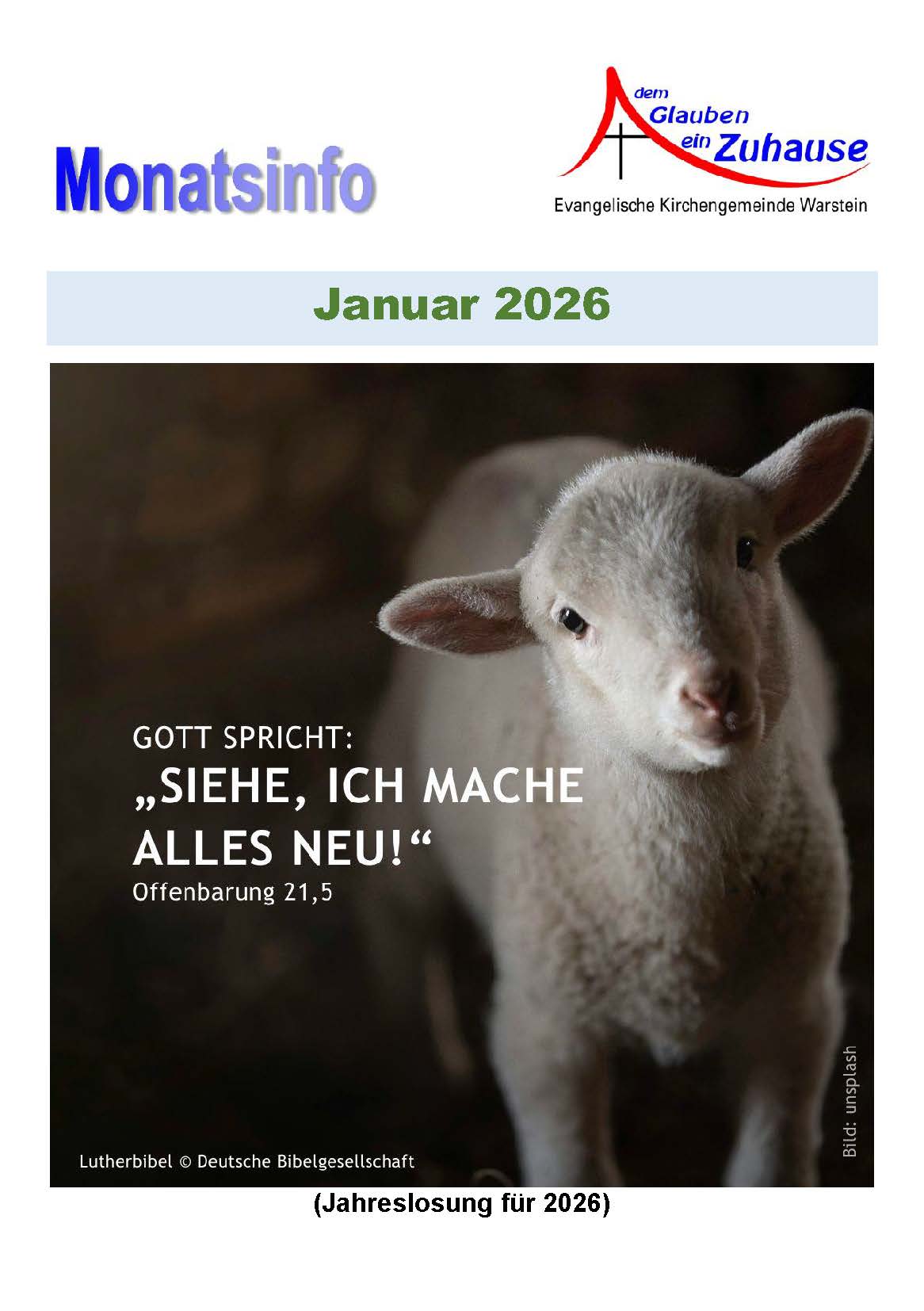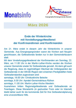 Die Monatsinformationen enthalten die aktuellen Veranstaltungen und den Gottesdienstplan des laufenden Monats.