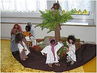 Dazu haben einige Frauen in speziellen Kursen biblische Erzählfiguren hergestellt, wie sie die Schweizerin Doris Egli entwickelt hat: